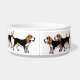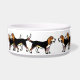 Een groep gelukkige Beagle potter over hun zaken. Een gelukkig, opitimistisch hondenontwerp, geplaatst tegen een witte achtergrond met een duidelijk gevoel van 1950.