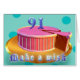 Roze Cake whimsical 91th Birthday-kaart. Vrolijk op 91 september Roze Cake strips Op de Birthday Card In Wenskaart staat: "Sluit je ogen en blaast je kaarsen... Ik hoop dat uw wensen uitkomen. Moge je verjaardag net zo bijzonder zijn als jij!" Maak een wensen eenlaags wenskaart van de Dek van de Dagen van de Dagen van de Dagen. Roze Cake strips maken van een vrolijk meisje poka met gouden taart bord verjaardagstaart, roze, pingue cake, roze aardbeienijstaart, Wenskaarten van Ines Miller.