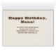 Het maakt niet uit of ze Nana, oma of een andere naam wordt genoemd, grootmoeders hebben een speciale plaats in ons hart en in ons gezin. Dit gelukkige verjaardagswenskaart heeft een felroze cactus bloesem. Een van de vele woestijnbloemen van Arizona, dit vat cactus bloom is mooi en oogstend zie je vaak de woestijn van Arizona met bloemen elke winter bestikken. De binnenkant van deze kaart biedt oprechte verjaardagswensen en kan snel en gemakkelijk aan uw behoeften worden aangepast.
