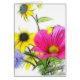 Een heldere bouquet van kosmos, zwarte geoogste suspensies en bachelorknoppen in een glazen jam vase.