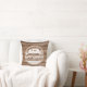 Een eenvoudig maar stijlvol kamperen kussen met de zin 'Happy Campers'. Aanpassen met uw familienaam. Getoond met een bijtende houten plaat achtergrond, perfect om uw bijtende kamperdecor aan te vullen.