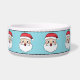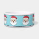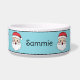Destei's originele cartoon illustratie van een vrolijke kerstman hoofd. De kerstman draagt een rood-wit pet, hij heeft een donzige witte baard en zijn gezichtsuitdrukking is vrolijk. De achtergrondkleur is blauw met zwarte boven- en onderranden. Er is ook een aanpasbaar tekstgebied voor de naam van het huisdier.