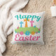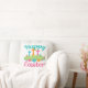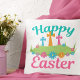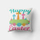 Een mooie Happy Pasen gooit kussens met pastel blauwgroen en roze met een schattige florale grens voor Christelijke kruisen. Een prachtig religieus paasontwerp voor een kerk of religieuze familie.