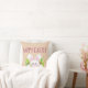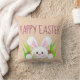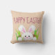 Dit fluffy witte konijn spiekt uit zijn konijnenhok om je een Happy Pasen toe te wensen. Op de achterkant van de kussen is er een volledig uitzicht, waarbij het rabijn zich herhaalt. De achtergrondkleur, een zacht beige, kan worden aangepast.