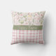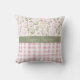 Spring gooi kussen met een Pasen-thema ontwerp. Het bovenste gedeelte van het kussen toont een pastelkleurig patroon van versierde paaseieren, delicate bloemen en bladtakken op een lichte achtergrond. Het middelste gedeelte bevat een gedempte groene band met de tekst "Happy Easter" geschreven in elegant wit lettertype. De tekst kan naar uw voorkeur worden aangepast. Het onderste gedeelte toont een roze en witte gingham geplakt patroon, het toevoegen van een gezellige, landelijke stijl charme. De combinatie van zachte pasteltinten en feestelijke motieven creëer is een warme en vrolijke esthetiek die perfect is voor paasdecoratie. Patronen en tekst herhaald op de achterzijde.