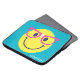 Deze leuke blauwgroen laptophoes heeft een vrolijk geel gezicht met faux pink glitterglazen en witte tape op de neusrug. Een speels, kleurrijk ontwerp dat perfect is voor kinderen! Personaliseer het om een one-of-a-kind tech-accessoire te creëer waar ze dol op zullen zijn.