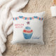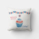 Hoorah voor het rood, wit blauw. Vier 4 juli met dit leuke ontwerp en fleur je interieur op. Dit patriottische ontwerp heeft een rood, wit en blauw versierde cupcake. Boven de zoete traktatie een rode, witte en blauwe banner. De tekst luidt: "GELUKKIG 4 JULI Vier!" Op de achterkant van het kussen is een patroon van sterren te zien. Dit ontwerp kan binnen of openlucht worden gebruikt.