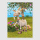 3D rendering van een blije cartoon geit op een fantasy tuin achtergrond