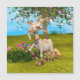 3D digitale weergave van een gelukkige cartoon geit op een fantasietuin achtergrond