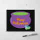 Deze spookachtige en schattige illustratie van de cauldron is voorzien van een paarse cartoon-cauldron die aan de rand is gevuld met een borrelen groene heksenbrew! De pot zegt "Happy Halloween" in oranje, griezelige letters en heeft een blauwe en groene strook ernaast. Deze leuke en originele halloween-kunst is het perfecte cadeau om te kopen voor iedereen die van spookachtige dingen houdt, heksen, kikkers en kussens en halloween! Trick or treat!
