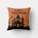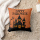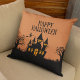 Decorate your home with our Halloween pillow featuring a haunted house design! Featuring vibrant orange and black colors, a captivating haunted house scene, a flying witch, and the phrase "Happy Halloween," this pillow is the perfect addition to your festive decor and brings a haunting charm and holiday spirit to any space.