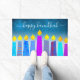 Happy Hanukkah Script Modern Boho Candle Turquoise Deurmat