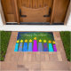 "Happy Hanukkah." Decoreer uw ingang in "stijl" met deze unieke, leuke, op maat gesneden vreugde! Een speelse, moderne, artsachtige illustratie van boho patroonkaarsen in een menorah helpt je om mee te doen in de vakantie van Hanukkah. De gesorteerde blauwe kaarsen met kleurrijke faux folie patronen en gouden faux vlammen bedekken een rijke, diepe groene getextureerde achtergrond. Verander de groet als u aan ander exemplaar of jouw naam wenst. De kaarten, de stickers, de ornamenten, de mokken, de drinkkware, de kussens, de huisdécor, en meer zijn ook beschikbaar. Wat een vermakelijke manier om dit feestelijke seizoen te vieren en iedereen die je binnenkomt welkom te heten! Gebruikend de makkelijk te gebruiken sjablonen, verander de groet in jouw naam of ander exemplaar, en u kunt dit doormat van Hanoeka moeiteloos personaliseren. Stuur me alstublieft alle vragen of verzoeken.