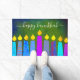 Happy Hanukkah Script Modern Boho Candles on Green Deurmat