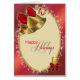 Een mooie niet-religieuze kerstkaart. Golden klokken met rode linten. Verstuur vakantiegroeten met deze stijlvolle traditionele kaart.