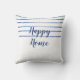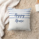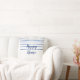 Het kussen kenmerkt blauwe strepen in witte achtergrond. Pas de tekst aan met die van u.