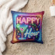 Heldere en kleurrijke neon teken displays "Happy Hour" naast een levendige cocktail glas op een bakstenen muur achtergrond