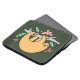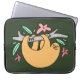 Het glimlachen en de gelukkige sloth hangt uit op zijn tak. Roze bloemenmakerswerk op donkergroene achtergrond