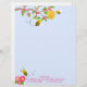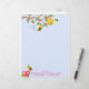 Dit schattige briefhoofd heeft een tak van prachtige roze bloemen bovenaan en een kleine groep onderaan. Er hangt een bijenkorf van de tak en twee bijen buigen over. Een andere bij staat op het punt te landen op de bloemen hieronder. Achtergrond is een hemel blauw. Geweldig voor dames of meisjes die brieven leren schrijven.