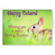 Op dit wenskaart van Ostara/Spring Equinox is een konijn van de lente te zien.