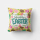 Happy Paast Colorful Easter Eggs Pattern Yellow Background Pillow