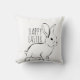 Dit minimalistische ontwerp is voorzien van een zwarte pen en een inktvormig konijn aan de voorkant met kleinere herhaalde konijnen aan de achterkant. De tekst luidt: "Gelukkig Pasen." Kies vierkante kussens voor de beste resultaten.