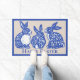 Happy Paaster Rabbit Bunny Blue White Delft Dedham Deurmat