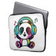 Happy Panda met hoofdtelefoons die naar muziek lui Laptop Sleeve
