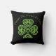 Dit zwarte en groene Ierse Keltische shamrock patroon gooit de kussens toe met een "geluk van de Ieren" aan uw thuisdecor. Dit patroon heeft een groene Keltische shamrock tegen een zwarte achtergrond met tekst die "Happy St. Patrick's Day" leest.