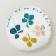 Happy St. Patrick's Day Shamrock Clover Round Pillow. Een Happy St. Patrick's Day-tekst met Iers shamrock in verschillende kleuren voor geluk. Clover heeft vier bladeren. U kunt de tekst wijzigen.