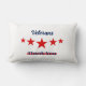 Lumbale werpkussen, heeft woorden over veteranen," veteranen dank je" met de kleur van de vlag van de VS, rode en blauwe kleur, en rode sterren tussen de woorden, Geschikt om veteranendag te vieren.