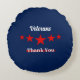 Ronde kussen, met woorden over veteranen," bedanken veteranen je" met blauwe achtergrond, en rode sterren tussen de woorden, Geschikt om veteranendag te vieren.