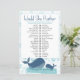 Happy whale baby shower game sheet voor The Zou ze liever gissen over gameactiviteit. Het ontwerp bevat een mammie en baby walvis die in het zee zwemt met een lijst zeepbellen. Het is geletterd in witte typografie met bewerkbare spelinstructies en een kleurenpalet in tinten blauw, aqua en oceaangroen. Als u van passende producten zou willen, te doorbladeren gelieve mijn Tevreden collectie van de Whale of me te berichten om de ontwerpsjablonen toe te voegen u wenst.