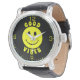 Happy Yellow Face Good Vibes Black Horloge