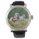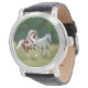 Origineel kunstontwerp van galopperende Appaloosa en Verfpaarden door paardenkunstenaar Carolyn McFann van Two Spinnende Cats Studio gedrukt op een kwaliteitshorloge voor Westerne en Engelse paardrijliefhebbers.
