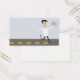 Retro stijl man chef visitekaartje; hij draagt een chef jas of jas, dragen of leveren van een koepelvormig schotel vol met heerlijke gerechten. Onderkant van de kaart is een weg, en hij loopt erop voor uw voedsel levering of catering bedrijf.