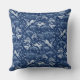 Throw kussen met een schattig dierpatroon in blauwe tinten, witte hazen springen op sneeuwveld © Clipso-Callipso/Julia Khoroshikh www.juliakhoroshikh.art #whitehares #wintervakanays #whiterabbits #kussens #nurserydecor #throwpillow