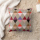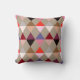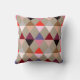 Mid-Century Modern Harlequin-patroon gemaakt van gestapelde driehoeken die diamanten vormen - tinten roze, roze, boei, wijn, grijs en staarten op een lichte taupe-tan achtergrond werpen kussen