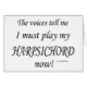 De stemmen zeggen me dat ik mijn Harpsichord moet spelen. Heb je stemmen in je hoofd die je vertellen dat je je instrument moet oefenen of dat je moet optreden? De stemmen kunnen afkomstig zijn van je leraar of directeur, of van jezelf, die je vertellen dat je moet oefenen om al je talent te laten zien.