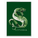 Bekijk deze groene waterverf Slytherin slang gebogen in een s-vorm naast een letter "S" met schreef.