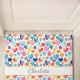 Mooie en lieve aangepaste naam Doormat met een kleurrijk waterverf hartpatroon. Doormat gepersonaliseerde naam met een delicaat, naadloos hart, romantisch, vrolijk en perfect als een geschenk.