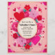 Roze en rode hartjes en bloemetjes omringen een gouden cirkel op een roze achtergrond, waardoor een leuke en leuke invitatie ontstaat voor een Valentijnsdag dans.