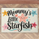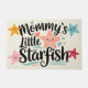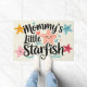 Deze hartverwarmende kinderdeurmat heeft de uitdrukking 'Mommy's Little Starfish' in een speels, elegant lettertype met charmante zeesterren.