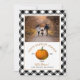 Illustratie van een pompoen. Rand is zwart-wit buffelvlakpatroon. Pas de tekst en de foto aan.