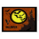 Zoek de fotoversie op http://www.zazzle.com/youphotoit De donkere achtergrond geeft een griezelige blik met het gehakte kasteel op de heuvel, de gele bocht en de vleermuizen. Als u meer van deze cartoon op andere producten wilt zien, gelieve me bij sandy@sandyspider.com te contacteren