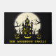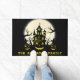 Set the perfect spooky scene at your doorstep with this eerie Halloween doormat featuring a haunted house, creepy cemetery, three glowing-eyed pumpkins, and a full moon shining in the background. A chillingly fun way to welcome guests and trick-or-treaters! Personalize it with your family name for a hauntingly unique touch.