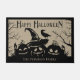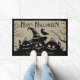 Haunting Halloween Welcome Doormat: Omarm de spookachtige geest met deze rustieke Halloween Welcome Doormat, met de woorden "Happy Halloween" in een goddeloze grillige lettertype. Drie griezelige jack-o-lantaarns met spookachtige grins staan centraal, terwijl een griezelige kraai tussen gedraaide bomen en flikkerende kaarsen neerstrijkt, waardoor een huiveringwekkend sfeervol ontwerp ontstaat. De rustieke faux burlap achtergrond versterkt de griezelige charme, waardoor het het perfecte accent is voor uw veranda. Voeg een persoonlijk tintje toe met aangepaste tekst hieronder voor een unieke Halloween-decoratie. Deze deurmat is ideaal voor iedereen die zijn Halloween-decor wil verheffen met een rustieke, enge sfeer.