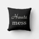 Deze zwarte en witte kussen zijn versierd met het schattige gezegde, Haute Mess op de voor- en achterkant, waardoor het perfect is voor een slaapkamer, een zitkamer of een woonkamer.