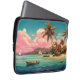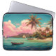 Hawaïaans eiland, palmboom, boot, roze laptop sleeve