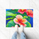 Hawaïaanse hibiscus tropische rode bloemen en groe deurmat
